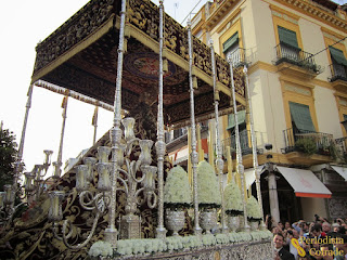 Pero el sábado había bulla. Muchísima. Y no faltó en ningún momento. Sevillanos y no sevillanos (en la Plaza Virgen de los Reyes unos chavales de Huelva explicaban a un toledano lo que estaba a punto de contemplar) la disfrutaron en masa desde su salida hasta su entrada. Y pese a todo, pese a la inmensa cantidad de cofrades que la siguieron, muchos de ellos cangrejeando durante prácticamente todo el itinerario, la Virgen de la Victoria no dejó de andar en ningún momento. Y es que cuando un paso quiere andar, anda. Dicho de otro modo: poner la excusa de la cantidad de gente que contempla a una cofradía en la calle como razón para tardar en completar un itinerario muchísimo más de lo anunciado no cuela. Las Cigarreras lo ha demostrado.