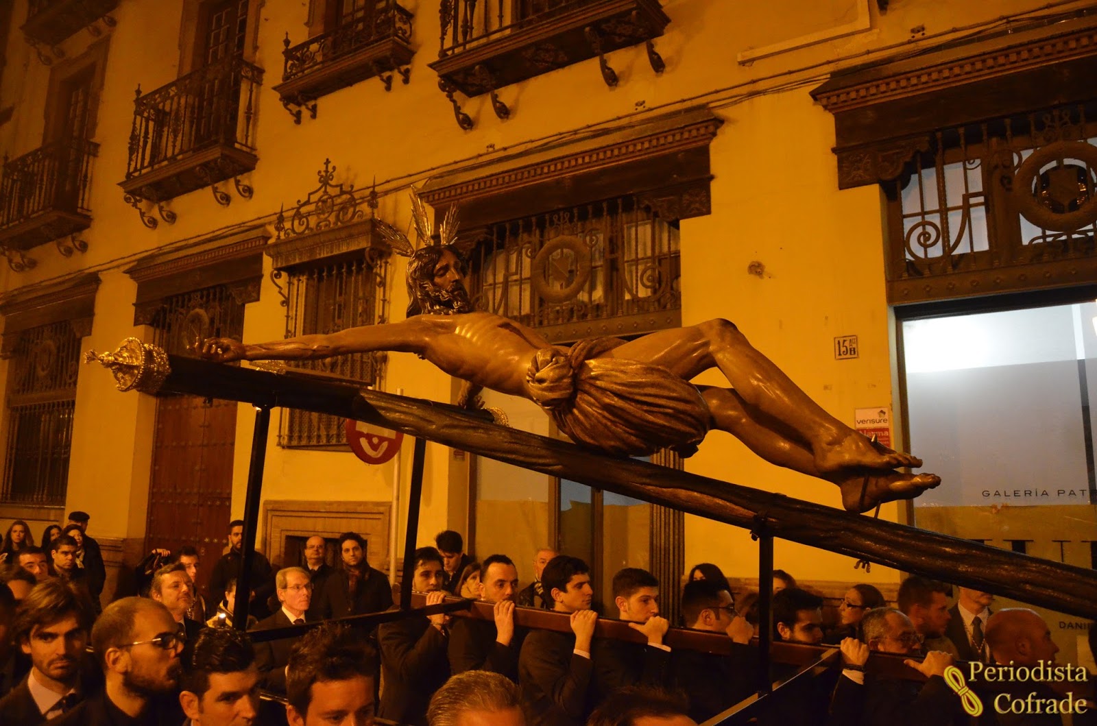 Giró en Temprado, dentro del serpenteante itinerario marcado para el vía crucis, y se encaminó hacia la Iglesia de la Caridad. Para sortear la reja de acceso al recinto, los hermanos encargados de portar las andas tuvieron que bajarlas para sujetarlas por los brazos, como justo una semana antes había ocurrido con la Piedad del Baratillo.