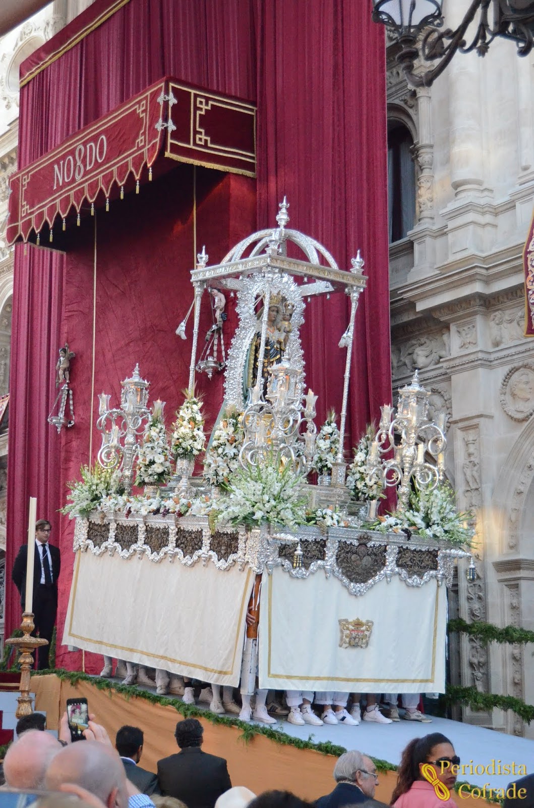 En este punto, justo delante del paso, se pudo escuchar a un hombre dirigirse con una cierta actitud intimidatoria a un joven con acento de más arriba de Despeñaperros, al que le decía cosas como: "Yo soy un fotógrafo profesional, para que te vayas enterando, y además soy de Sevilla y tú no". Al parecer, al que se presentó como sevillano y "fotógrafo profesional" (aunque en ese momento no llevaba ninguna cámara en la mano) le pareció mal que el "forastero", como se decía en las películas del oeste, hubiera estado algún tiempo delante del paso haciendo fotos durante la parada, impidiéndole a él hacer una con su móvil. El resultado fue una escena bastante lamentable y fuera de lugar. Ahora que se habla tanto de turismo 'low cost', se cuestiona la imagen de Sevilla que se ofrece con el turismo de despedidas de soltero y hasta se critica desde ciertos sectores la vestimenta de los turistas, haríamos bien en reflexionar si a veces las actitudes de algunos sevillanos con el que viene de fuera no perjudican también la imagen de la propia ciudad.