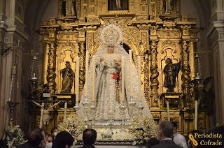Para este rosario de la aurora, la dolorosa de Antonio Illanes estaba subida a las andas y situada en el presbiterio alto de la Parroquia de San Sebastián. Se encontraba vestida con el manto de tisú bordado en plata por Sucesores de Elena Caro en 2009, la saya también de tisú de plata bordada en el mismo metal por Manuel Solano (2014), la toca de sobremanto a juego que el mismo bordador realizó en 2016 (la saya se hizo por el LXXV aniversario de la hermandad y la toca por la Coronación Canónica) y el fajín rojo de capitán general de 1990.