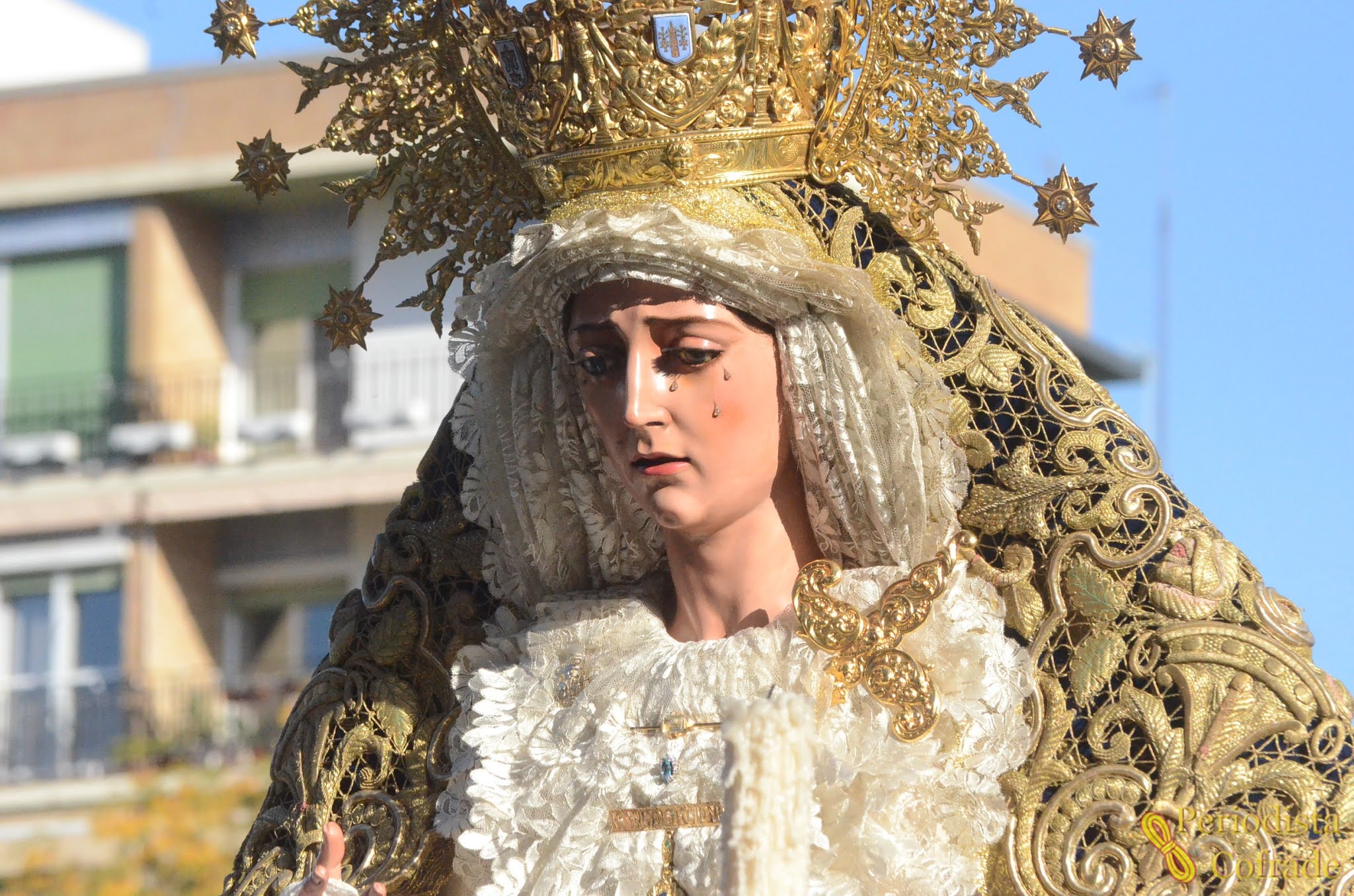 A continuación, la Virgen de Consolación se dirigió de nuevo a la avenida Eduardo Dato, de la que salió poco después al tomar la calle Goya. Desde allí, seguiría con el rezo de los misterios del Santo Rosario y con las letanías por las calles Rico Cejudo, Marqués de Nervión, Alejandro Collantes, Cardenal Lluch y Cristo de la Sed, entrando la dolorosa en la Parroquia de la Concepción Inmaculada minutos antes de las doce y cuarto del mediodía.