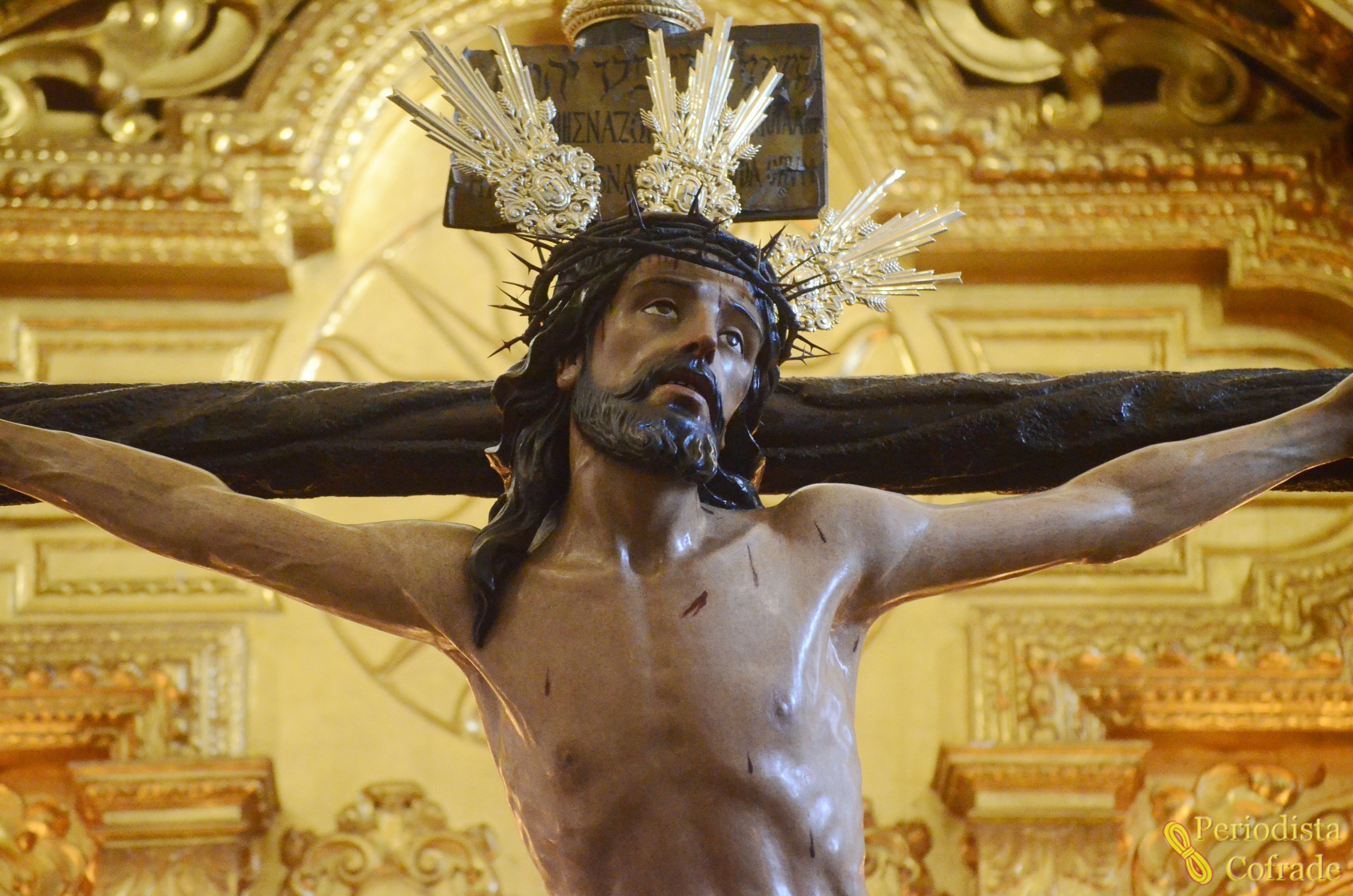 Al fondo, el retablo de la hermandad cuenta con un buen número de candeleros que abrazan cuatro jarras del paso de palio de la Virgen de las Lágrimas con diferentes flores de tonalidades morada, malva y roja. Además, dos de los ángeles mancebos del paso de misterio se encuentran sobre el banco del retablo y los otros dos en su lugar habitual, a un lado y a otro del lugar que ocupa todo el año el crucificado. Finalmente, el estandarte corporativo está fuera de la capilla, a la izquierda del cancel.