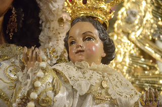 El pasado domingo tuvo lugar el besamanos a Nuestra Señora del Rosario en la Parroquia de San Julián, donde fue ubicada en el altar mayor, sobre una escalinata circular de color rojo y una peana de plata con una cartela frontal dorada.