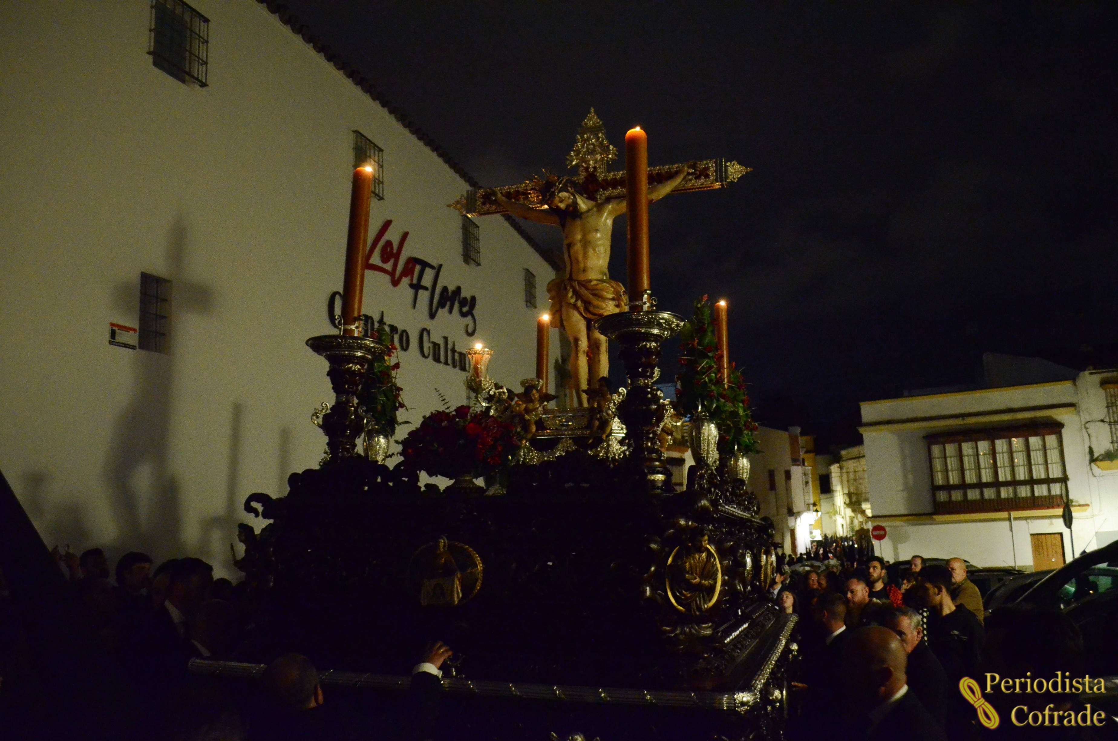 Desde la plaza Rafael Rivero, el crucificado salió a tambor a la calle Porvera, donde luego se pudo escuchar la marcha "El Desprecio de Herodes", seguida más adelante por "Virgen de la Paloma" al tomar la calle San Juan de Dios.