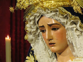 En lo que respecta al montaje, se centró en esta ocasión en una escalinata que desde el camarín, donde se colocó un trono, llegaba hasta el presbiterio de la parroquia y en cuyos escalones había diversas flores y guardabrisas. Debajo, a ambos lados de la Virgen fueron situados varios centros florales y candeleros.