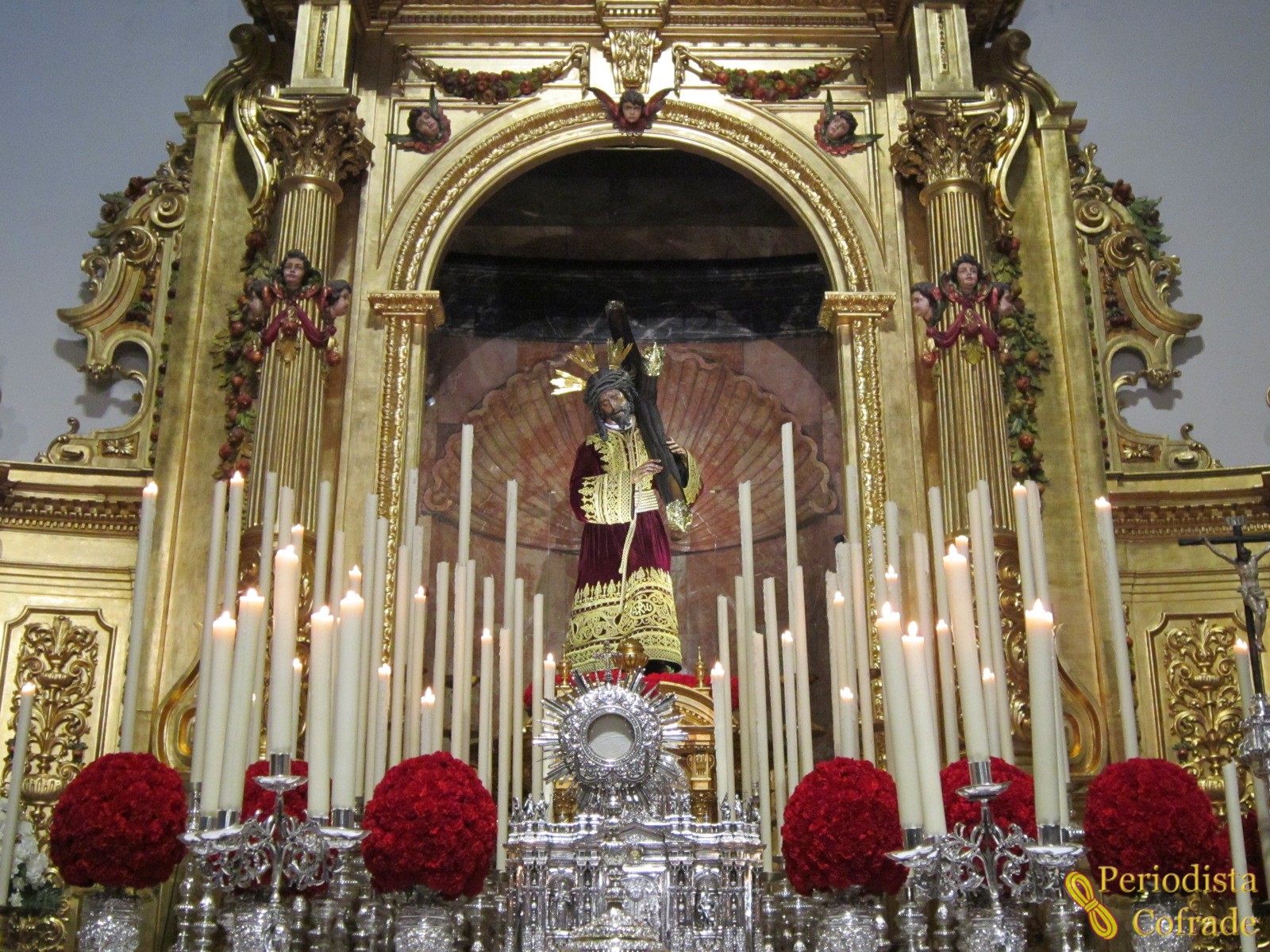 El arzobispo de Sevilla, Juan José Asenjo Pelegrina, ha sido el encargado de predicar esta Función Principal, para la que el altar estaba cuajado de cirios y con un exorno floral compuesto de claveles rojos para el Señor (en seis jarras del paso de palio) y San Juan Evangelista, y blancos para la Virgen del Mayor Dolor y Traspaso. El Señor vestía la túnica persa de Juan Manuel Rodríguez Ojeda.