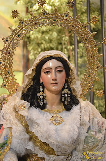 Los pasados días 2 y 3 de abril tuvo lugar en la Parroquia de Santa Ana el besamanos a la Divina Pastora de Triana, culto para el que la Patrona del Deporte Nacional fue situada ante su capilla, a los pies de la nave de la Epístola, entre una profusa decoración floral a base de diferentes especies de tonos rosas y morados.