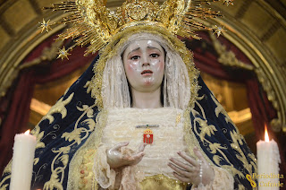 Pero una vez en ella, giró a la derecha para pasar por delante de Santo Domingo, donde reside la hermandad propietaria del manto que llevaba, y girar luego en Puerta de Sevilla.