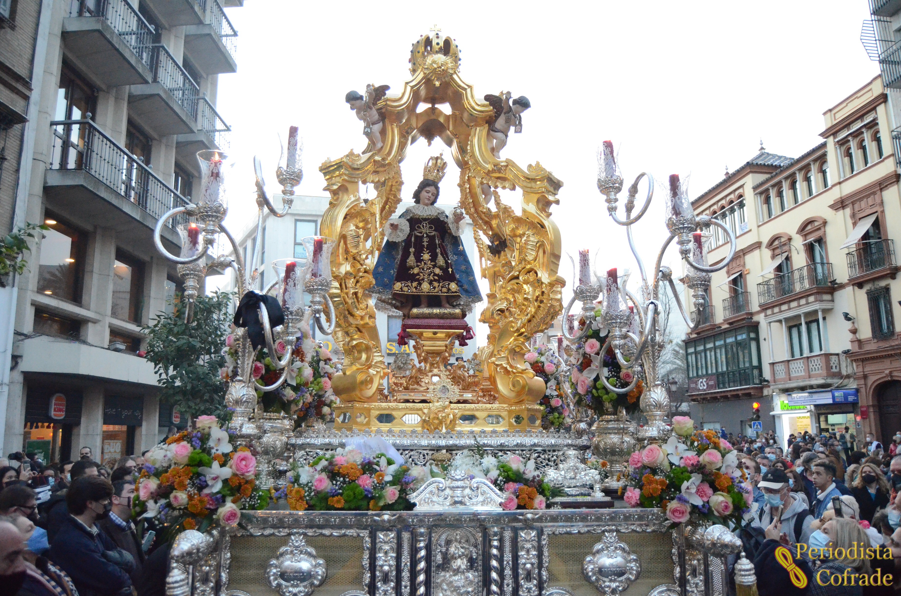 Fue el último paso que salió a las calles antes de la pandemia del coronavirus hace dos intensos y largos años (ver). Este sábado, y aunque ya el pasado otoño vimos felizmente pasos en las calles, el Milagroso Niño Jesús de Praga, de la Archicofradía del Carmen del Santo Ángel, cerró de alguna manera el círculo con una salida procesional que atrajo a un gran número de cofrades; quizá a más de los que hasta 2020 solían acudir a una cita que poco a poco se ha convertido en imprescindible en el calendario cofradiero de la ciudad.
