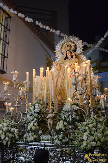 Más adelante, la Virgen de las Nieves tomó la calle Fabiola a los sones de "Pasan los campanilleros", y en la siguiente parada se produjo un relevo de costaleros. Sí, en una zona realmente estrecha de la calle, cuando sólo una chicotá antes se podría haber realizado con mucha más comodidad en una parte bastante más amplia.