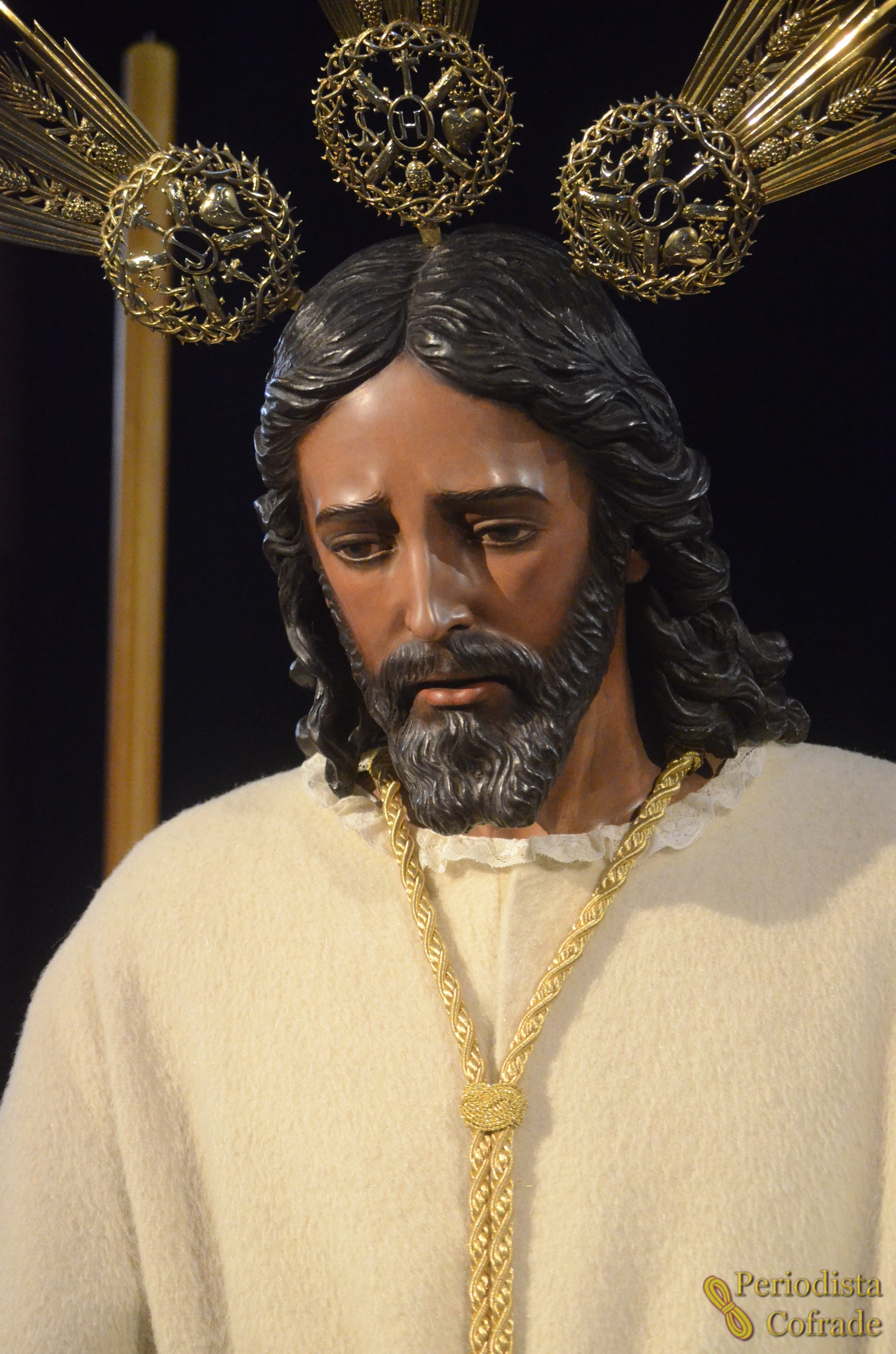 La Hermandad de los Panaderos ha iniciado este jueves el acto de veneración a Nuestro Padre Jesús del Soberano Poder, que recibe al devoto delante del presbiterio de la Capilla de San Andrés vestido con su característica túnica blanca de pelo de camello y cíngulo dorado. Además, luce unas potencias doradas distintas a las de salida.