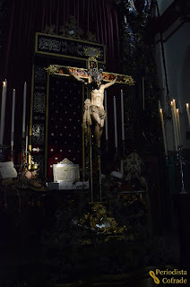 Detrás, un cortinaje de damasco rojo cubría parcialmente el retablo mayor, ante el que estaba colocado el dosel de cultos de la hermandad entre seis candeleros con velas blancas de gas y una sacra en la parte inferior. Y ante el dosel, en los lados, se dispusieron como es costumbre dos mesas de madera dorada. En la de la izquierda, enseres que nos hablaban de la espiritualidad, la fe, la oración, la Pasión de Cristo; y en la de la derecha, lo material, el reconocimiento, los honores, los cargos, la banalidad... Todas esas cosas que, in ictu oculi, se convierten en la nada.