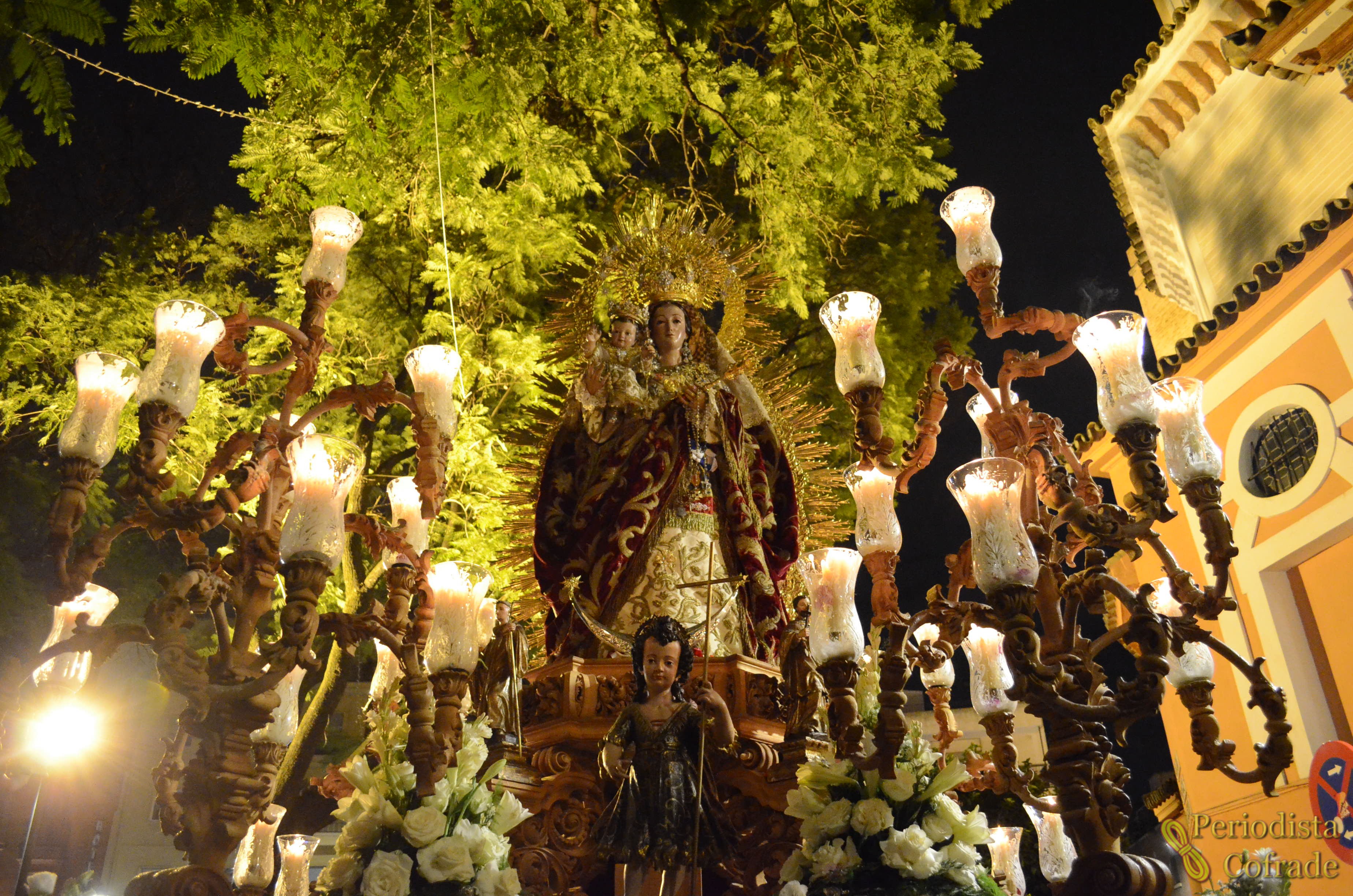 La última levantá del paso en la calle se hizo a pulso y se dedicó a la propia Hermandad del Carmen y Rosario de Santa Catalina. Luego, la Virgen entró en la iglesia y la Banda de Música Ciudad de Dos Hermanas cerró su participación tocando el Himno de España cuando pasaban dos minutos de las once de la noche.